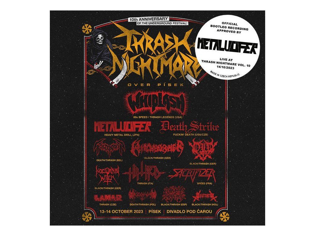 Two live albums by legendary old school metal bands DEATH STRIKE and METALUCIFER from the last edition of the underground metal festival Thrash Nightmare in Písek, Czech Republic. You get energy and raw metal on black vinyls and live recordings of great and unforgettable shows at sold-out festival from leading names of world death/thrash/heavy metal scene